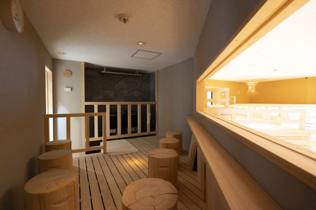 こちらも少人数のサウナになります。室内は75℃と比較的低温でメインエリアの演むすびの中を観覧することも可能です。少人数で談笑しながらサウナを楽しむにはちょうど良いですね。