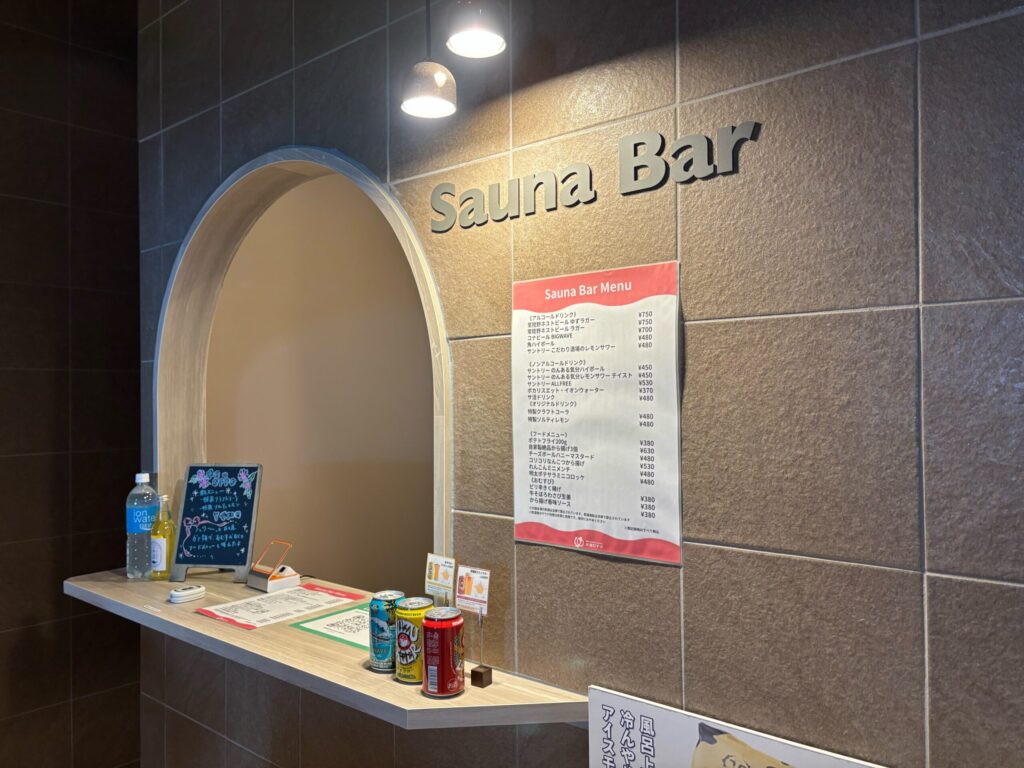 サウナで数回ととのった後はしっかりと水分補給が必要です。2Fフロアには冷水器がないので必要な方はこのSounaBarにてドリンクを注文するのも良いですね。