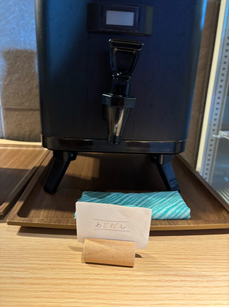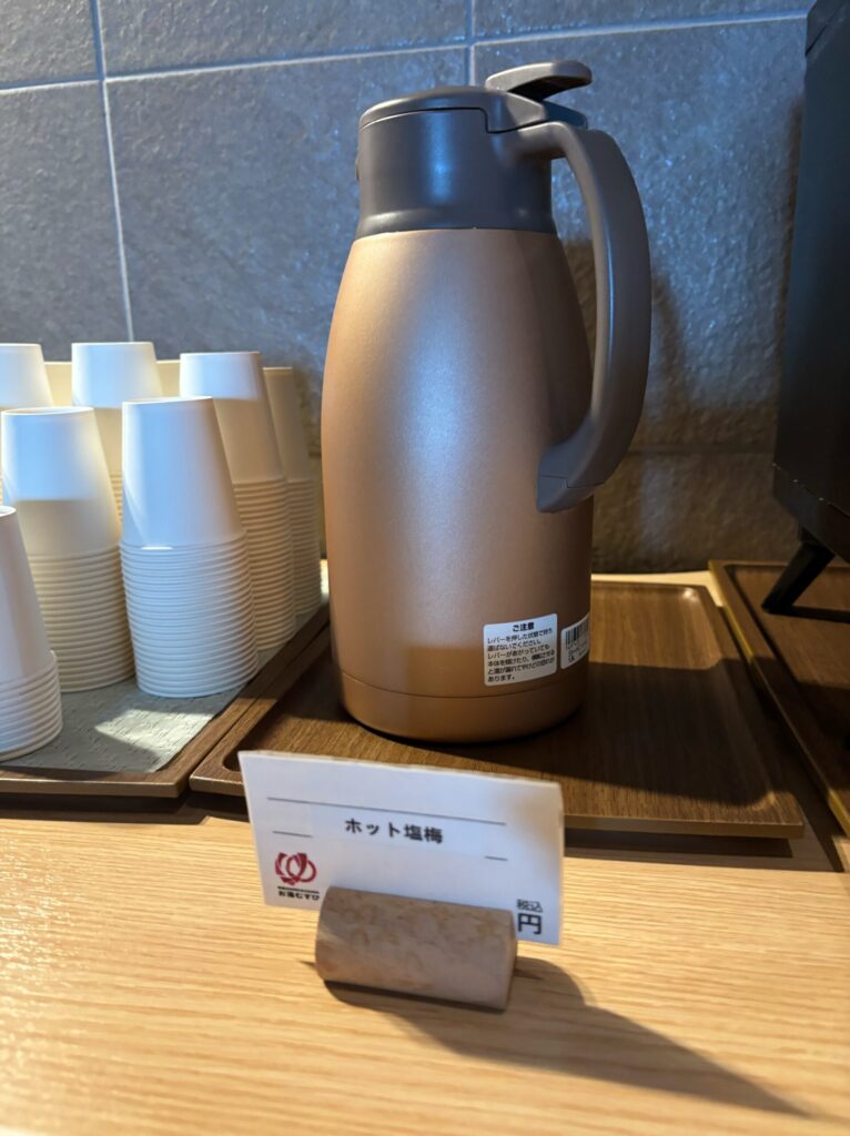 常総ONSEN&SAUNAお湯むすびに来て一番びっくりそして嬉しいサービスだな!と感じたのがこの「ホット塩梅」と「あごだし」です。