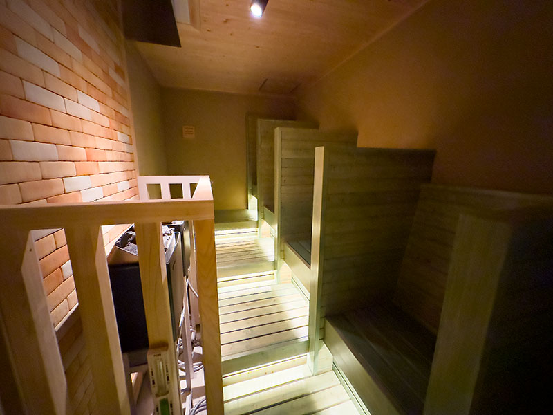 こちらは85℃2番目に熱いサウナでした。ただ部屋の広さも5席と収容人数が少ない分ロウリュウした時の熱さはより一層感じることができます。また座席の場所に応じて熱さを微調節できるのが良い点でした。