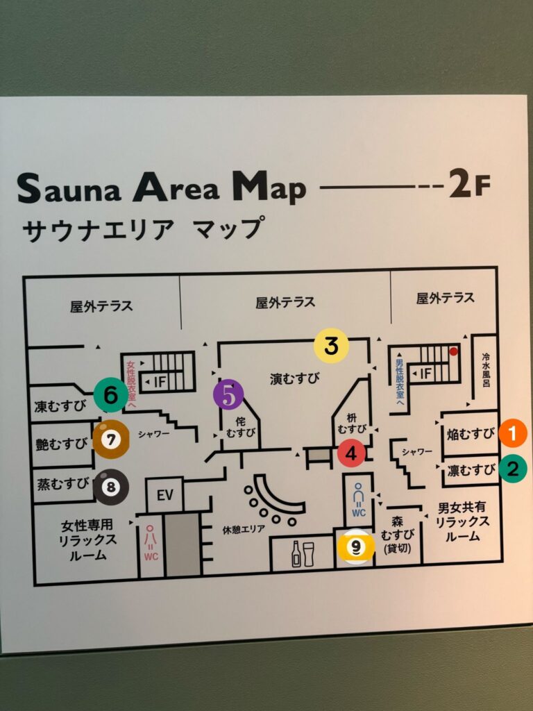 2Fには合計8室のサウナエリアが完備されており、それぞれのサウナの特徴をご紹介していきます。