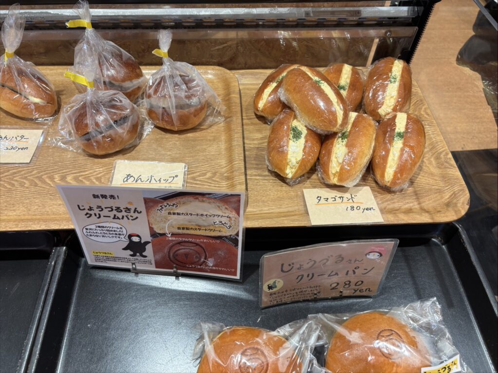 昔ながらのたまごサラダをたっぷりと使用した「タマゴサンド」や新発売の「じょうづるさんクリームパン」が目を惹きます。