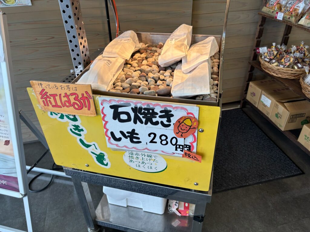 旬のサツマイモを焼き芋として堪能することもできます。品種は紅はるかとのことでザ王道のお芋ですね。蜜がたっぷりで甘いこと間違いなしですね。