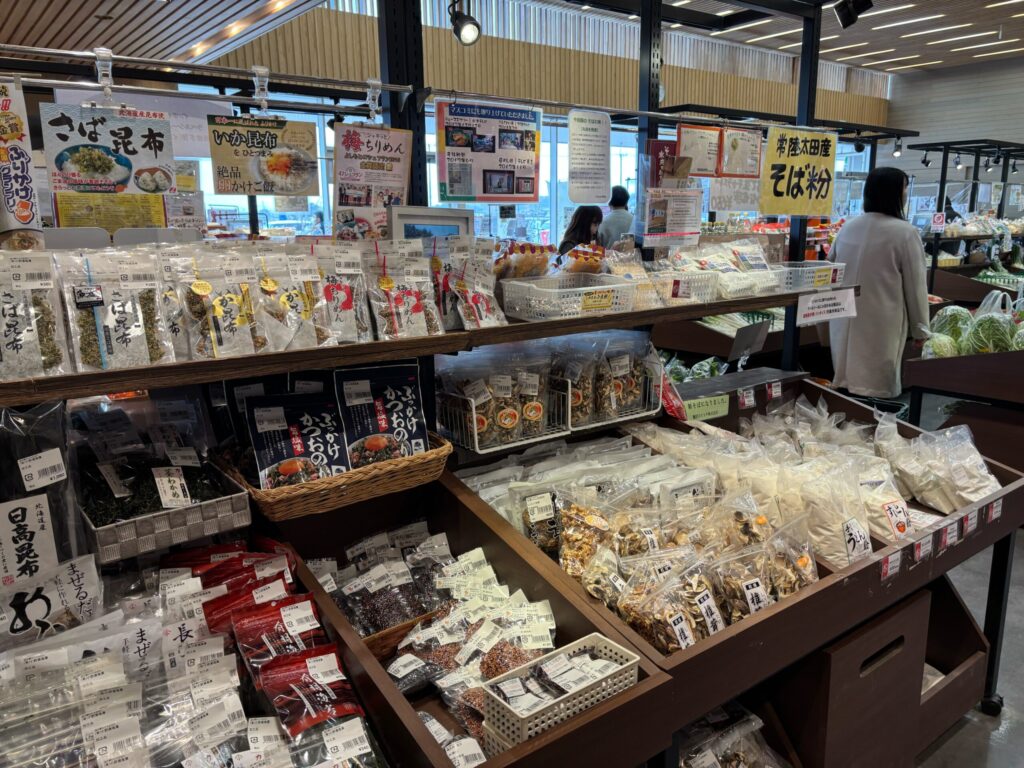 「道の駅ひたちおおた」は直売所コーナーは充実した内容となっております。常陸太田市で採れた新鮮な野菜に果物、特産品などが取り揃えられていました。