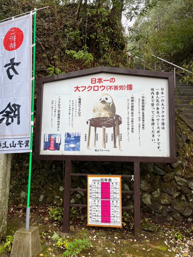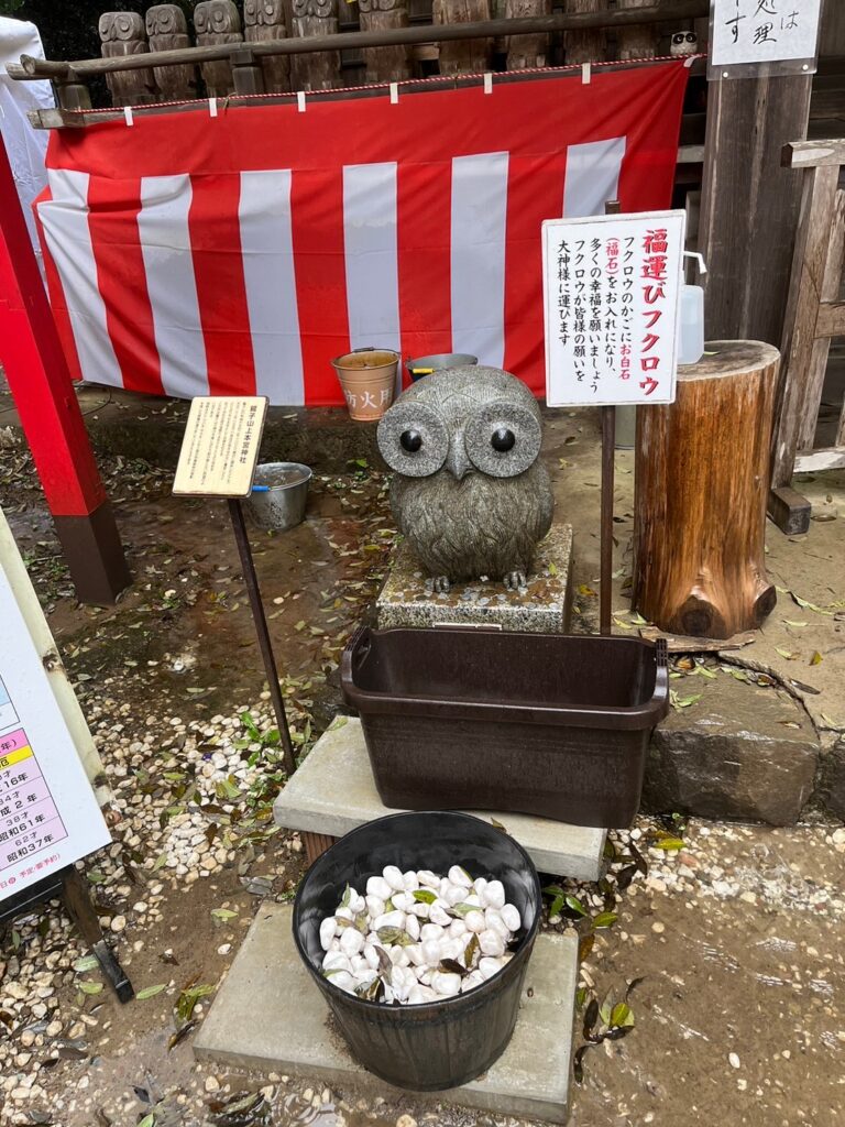 「フクロウ=不苦労」にちなみ、苦労を取り払い福運を授けるご利益があると全国から参拝者が絶えません。