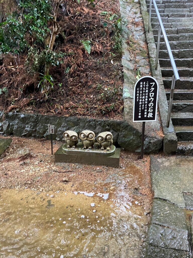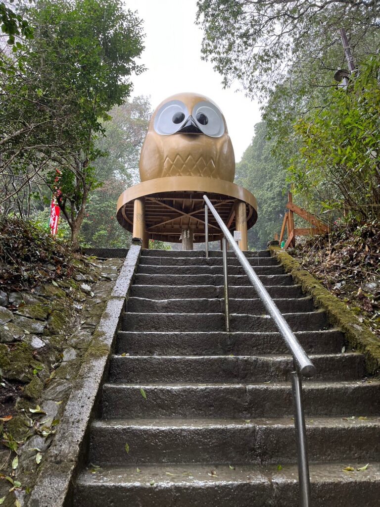 階段を上っていかないといけないのですが、階段したからでもフクロウ像の大きさが伺えます。