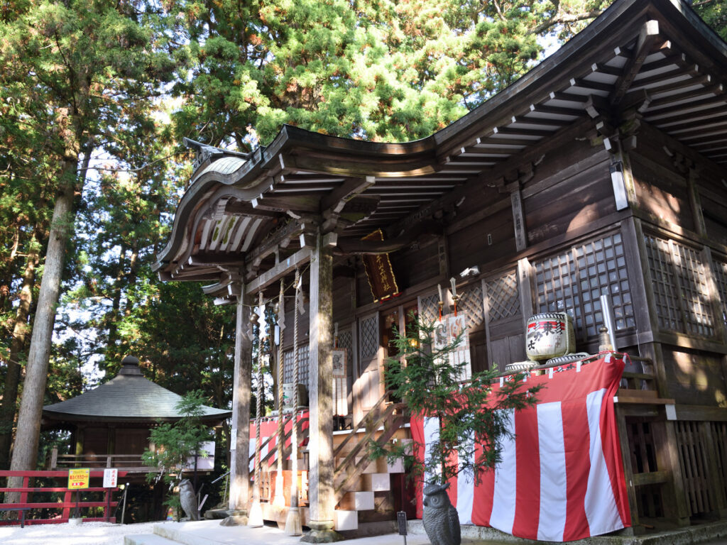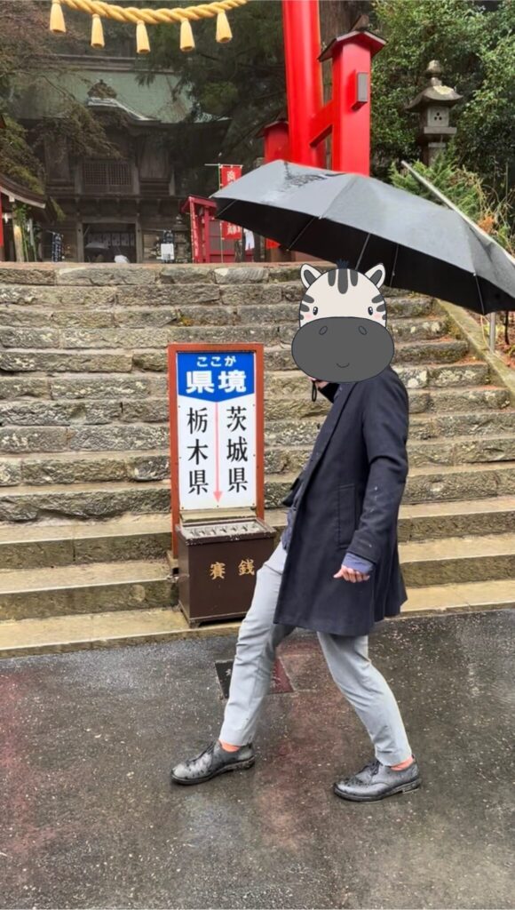 本殿は、中央でピタリと県境をまたいで建っており、社務所は栃木県側、鳥居や駐車場は茨城県側に配置され、参拝中に自然と県境を何度も越える体験ができるのが醍醐味。