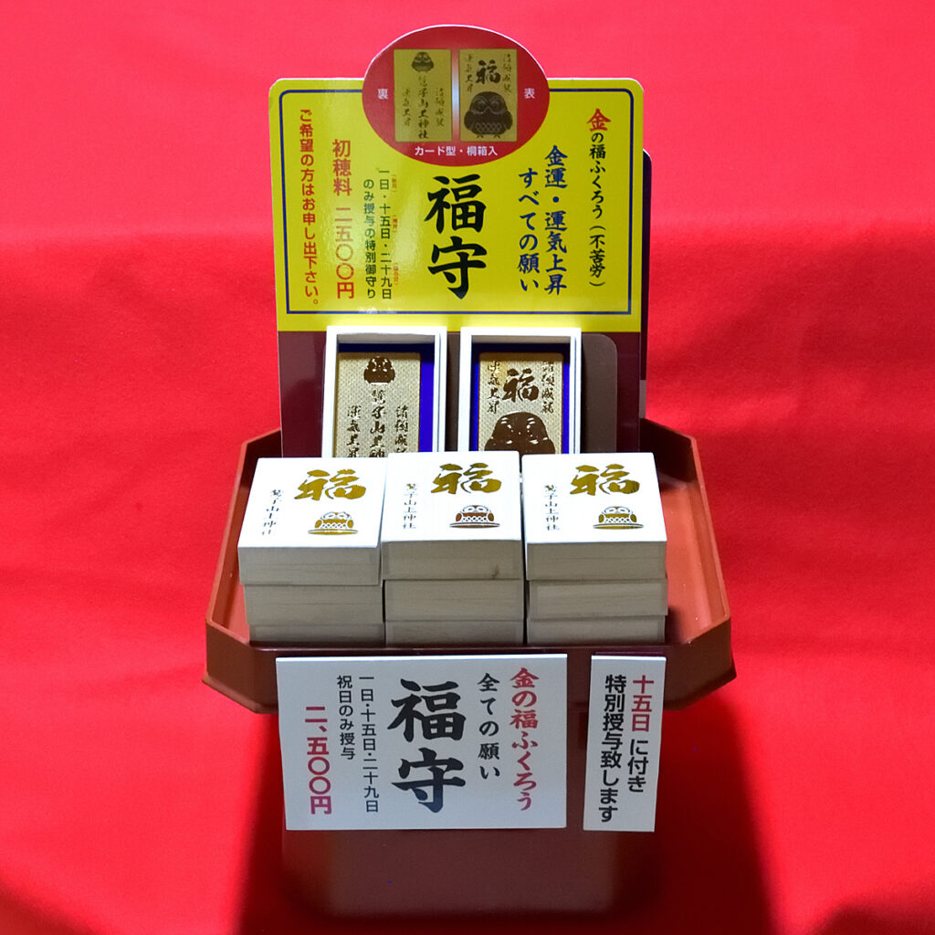 1日、15日、29日、祝日、連休などの特定日のみ販売されているお守りです。金のフクロウがすべての願いを運んでくれるという迷信があり、非常に人気なお守りです。